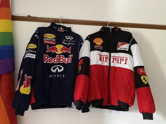 Add this retro Ferrari Formula One jacket to your collection and celebrate the legacy of racing with a piece that never goes out of style.